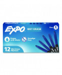 Wet Erase Markers, Fine Needle Tip, Blue, 12/Pack