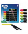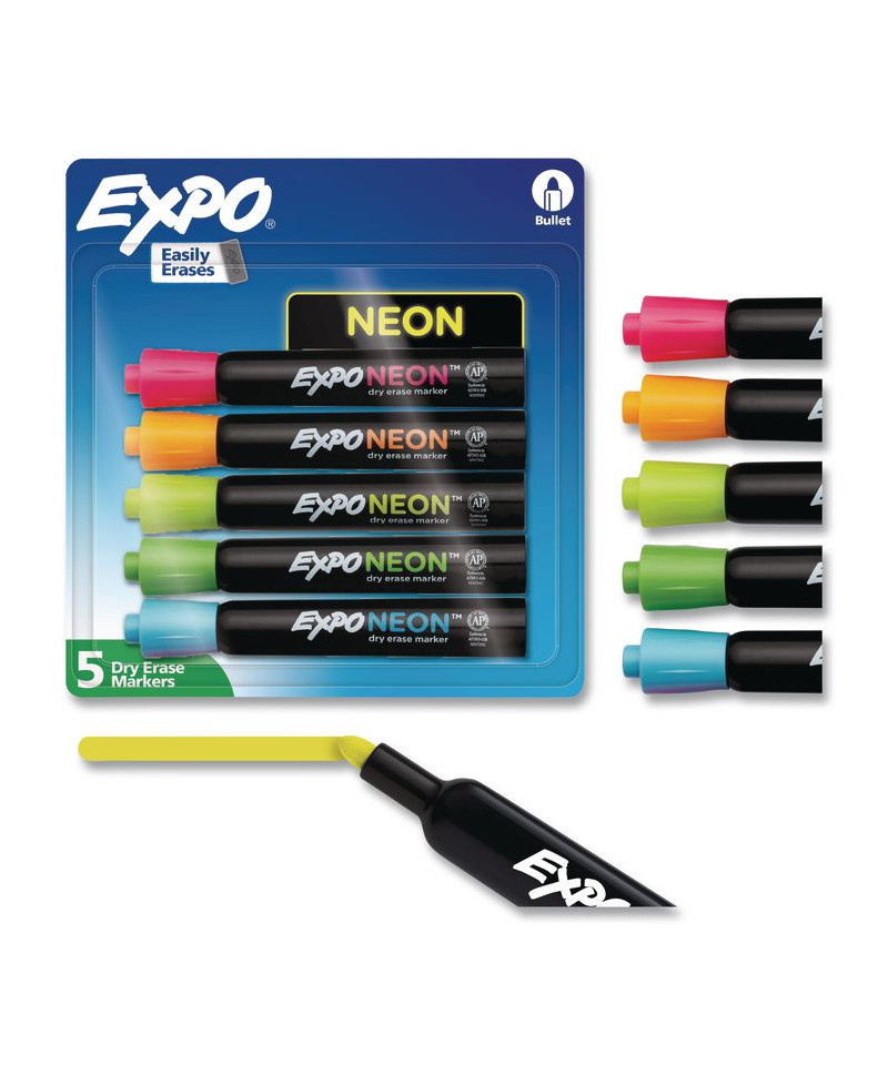 Create vibrant marks on windows, mirrors and dark surfaces with Expo Neon Low Odor Dry Erase Markers. The neon window markers feature a specially designed, low-odor ink that can be used on both black and white dry erase surfaces as well as windows. The ink goes on bright yet also erases easily. Use your colorful Expo dry erase markers to leave notes and give exciting lessons.