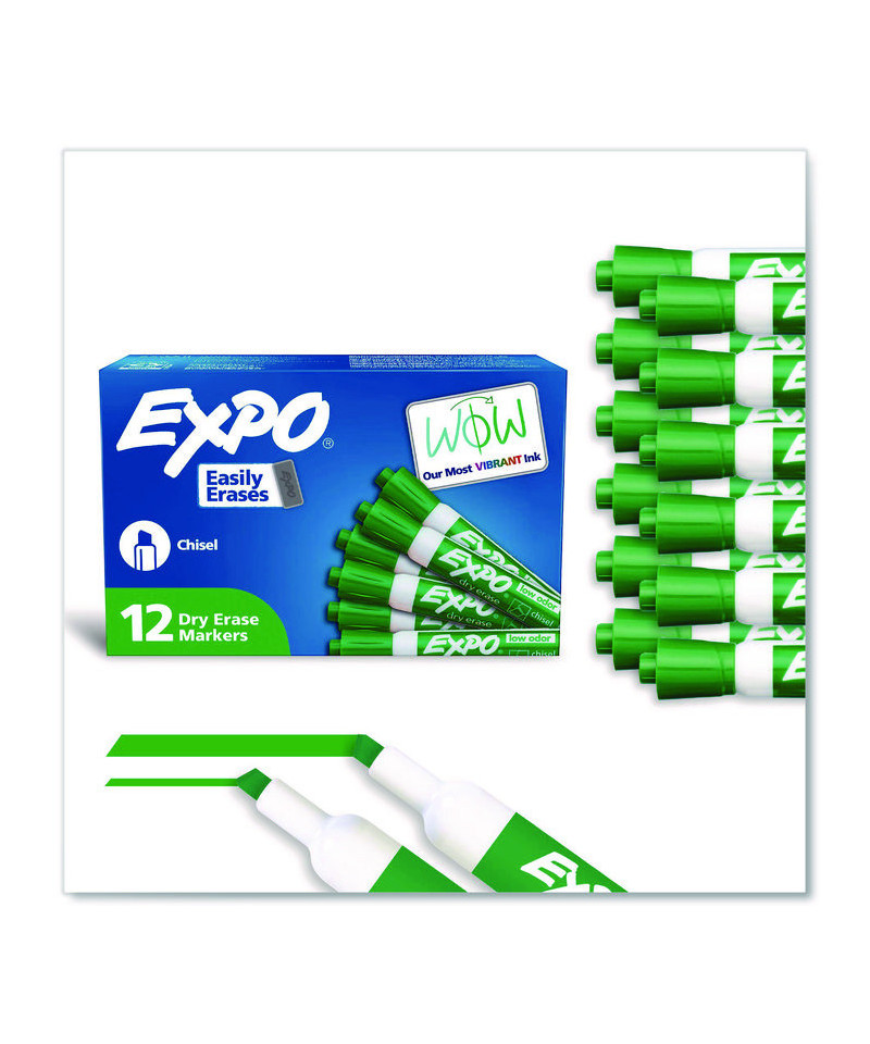 Create high impact marks and track, schedule and present clearly. High-quality ink-delivery system ensures consistent, skip-free results, while bold, vivid colors make it easy to see what's written from a distance. EXPO® Low-Odor Dry-Erase Markers always erase cleanly and easily from whiteboards and other non-porous surfaces such as porcelain, melamine and glass, simply with a dry cloth or a standard whiteboard eraser; but for optimal results, EXPO® whiteboard erasers are recommended. As their ink is specially designed to be low-odor and quick drying, they're the perfect dry erase marker for use just about everywhere: classrooms, offices, homes, boardrooms and more.