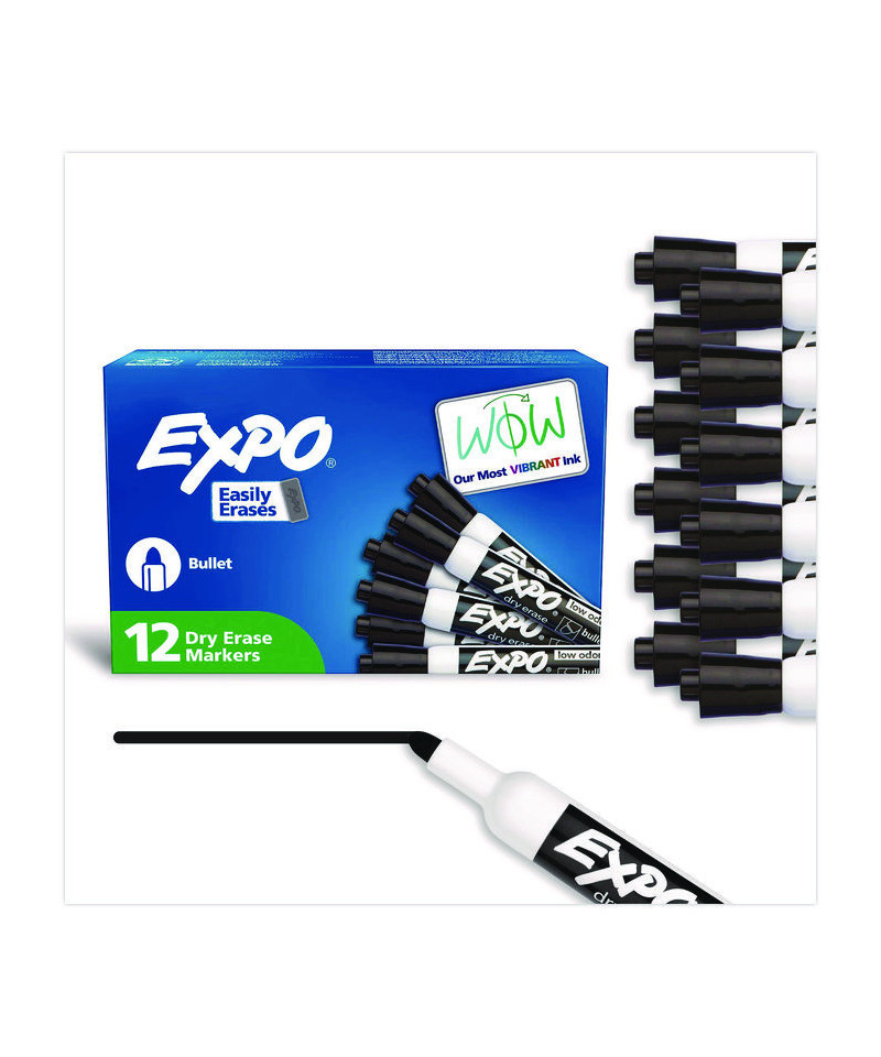 Create high impact marks and track, schedule and present clearly. High-quality ink-delivery system ensures consistent, skip-free results, while bold, vivid colors make it easy to see what's written from a distance. EXPO® Low-Odor Dry-Erase Markers always erase cleanly and easily from whiteboards and other non-porous surfaces such as porcelain, melamine and glass, simply with a dry cloth or a standard whiteboard eraser; but for optimal results, EXPO® whiteboard erasers are recommended. As their ink is specially designed to be low-odor and quick drying, they're the perfect dry erase marker for use just about everywhere: classrooms, offices, homes, boardrooms and more.