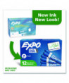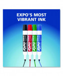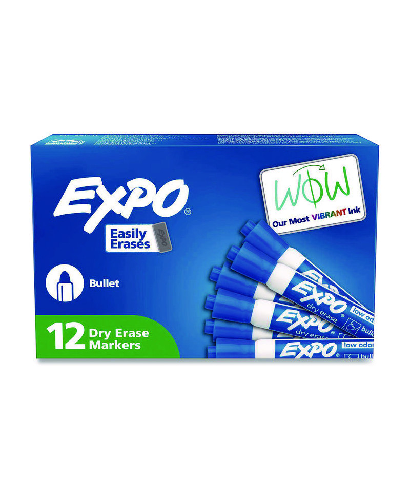 Create high impact marks and track, schedule and present clearly. High-quality ink-delivery system ensures consistent, skip-free results, while bold, vivid colors make it easy to see what's written from a distance. EXPO® Low-Odor Dry-Erase Markers always erase cleanly and easily from whiteboards and other non-porous surfaces such as porcelain, melamine and glass, simply with a dry cloth or a standard whiteboard eraser; but for optimal results, EXPO® whiteboard erasers are recommended. As their ink is specially designed to be low-odor and quick drying, they're the perfect dry erase marker for use just about everywhere: classrooms, offices, homes, boardrooms and more.
