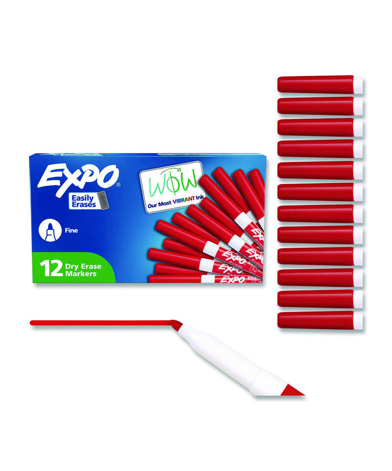 Create high impact marks and track, schedule and present clearly. High-quality ink-delivery system ensures consistent, skip-free results, while bold, vivid colors make it easy to see what's written from a distance. EXPO® Low-Odor Dry-Erase Markers always erase cleanly and easily from whiteboards and other non-porous surfaces such as porcelain, melamine and glass, simply with a dry cloth or a standard whiteboard eraser; but for optimal results, EXPO® whiteboard erasers are recommended. As their ink is specially designed to be low-odor and quick drying, they're the perfect dry erase marker for use just about everywhere: classrooms, offices, homes, boardrooms and more.