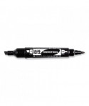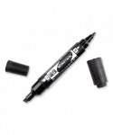 Permanent marker with two durable tips-wide chisel tip and fine bullet tip. Works on a wide range of materials, including paper, metal, plastic, glass, vinyl, porcelain, leather, and wood. Two tips provide options for making thin or thick marks of smear-proof oil-based permanent ink. Durable tips made of polyester fiber (chisel tip) and acrylic fiber (fine tip) stay fresh and firm even after heavy use. Great for marking on shipping labels, boxes, pallets, signs, and more. Anti-roll chisel tip cap prevents marker from rolling off work surface. Water resistant. 6 mm chisel tip and 2 mm fine tip.