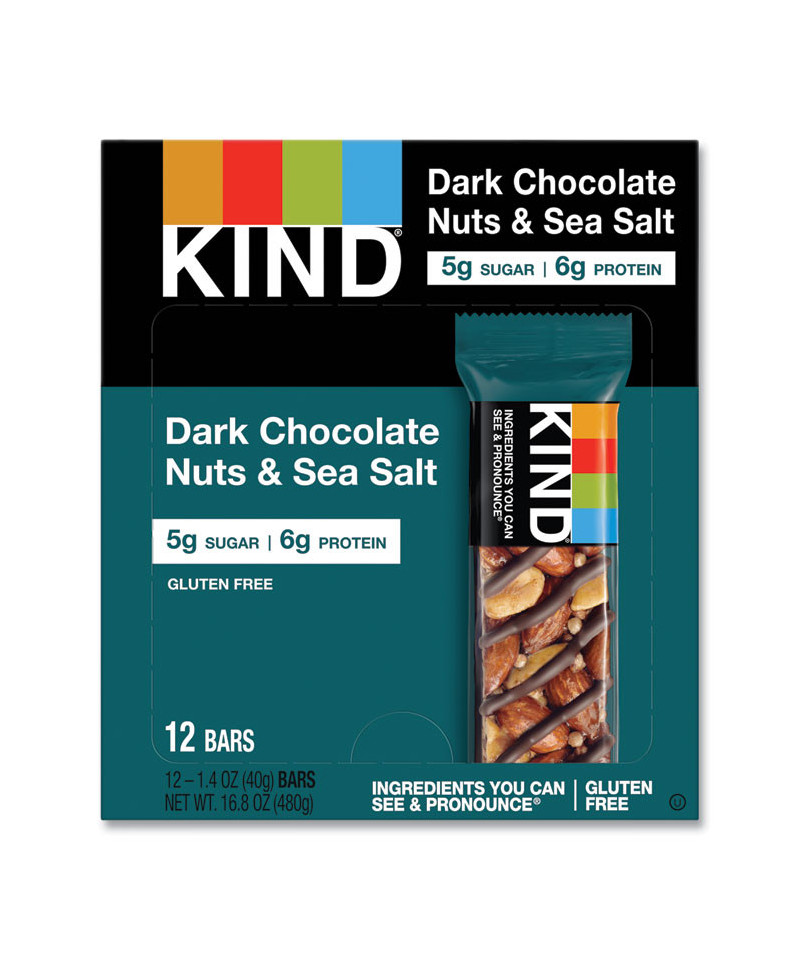 Nuts and Spices Bar, Dark Chocolate Nuts and Sea Salt, 1.4 oz Bar, 12/Box