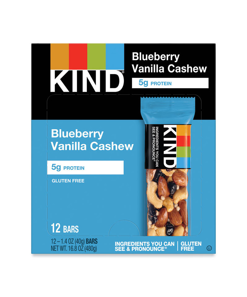 Fruit and Nut Bars, Blueberry Vanilla and Cashew, 1.4 oz Bar, 12/Box