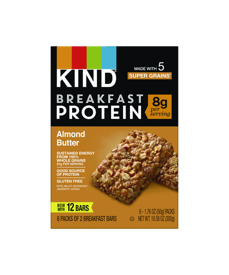 KIND Breakfast Protein bars are a wholesome, healthy snack made with 100% whole grains for sustained energy. Made with premium, better-for-you ingredients, these bars are made with five super grains—oats, buckwheat, millet, amaranth and quinoa. These KIND bars come in individually wrapped two bar packs that are perfect for convenient, on-the-go gluten free snacks. Each two-bar pack has at least one full serving of whole grains. Perfect when you need a nutritious snack for your lunchbox or nutrition bars to grab on your way out the door. Made with quality, wholesome ingredients, these gluten free breakfast bars contain 0 grams of trans fat. These healthy snacks are also made without genetically engineered ingredients.