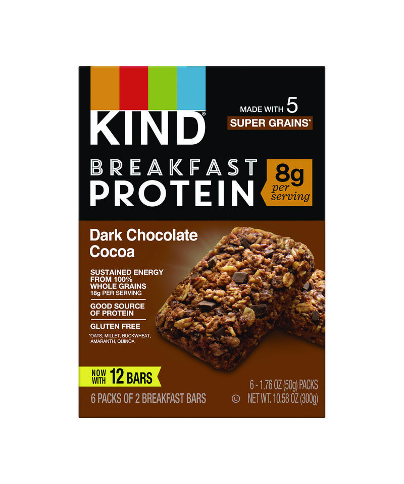 Breakfast Protein Bars, Dark Chocolate Cocoa, 1.76 oz Two-Bar Packs, 6/Box