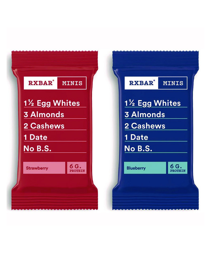Perfectly sized to fit in your pocket, this RX Bar Minis variety pack delivers all the real fruit flavor you're looking for in a mini, portable size. Take these protein bars with you on your next errand run, on the way to the gym, or when you're just snacking at your desk. With ingredients you can recognize (egg whites, almonds, cashews, dates, and real strawberries or blueberries), take a bite of sweet goodness and enjoy 6 g of protein when you need it most.