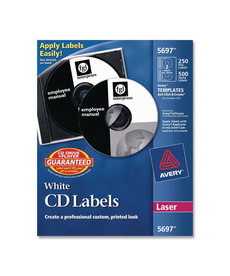 These CD labels allow you to create custom-made, professional-looking labels with a printed appearance for your business. Labels feature a unique, patented design which centers labels using a standard jewel case, and they're guaranteed not to lift, peel off or wrinkle. With free designs, QR codes, and templates from Avery® Design & Print, you can jazz up each label with high-resolution photos and graphics and then print them in minutes. 8.5" x 11" sheets.