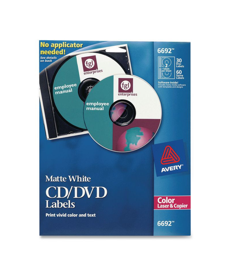 These CD labels allow you to create custom-made, professional-looking labels with a printed appearance for your business. Labels feature a unique, patented design which centers labels using a standard jewel case, and they're guaranteed not to lift, peel off or wrinkle. With free designs, QR codes, and templates from Avery® Design & Print, you can jazz up each label with high-resolution photos and graphics and then print them in minutes. 8.5" x 11" sheets.