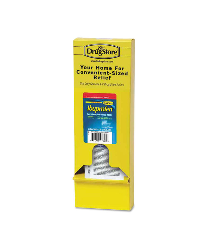 Don't suffer through sickness—fight the fever with ibuprofen fever reducer and pain reliever. 200 mg of ibuprofen work to relieve minor aches and pains, including everything from headaches and backaches to menstrual cramps and muscular aches. Handy individual portion packs are great to have around the office for everyday aches and pains. Packaged for quick refill of Lil' Drugstore Medicine Dispensers (sold separately) or for other use.