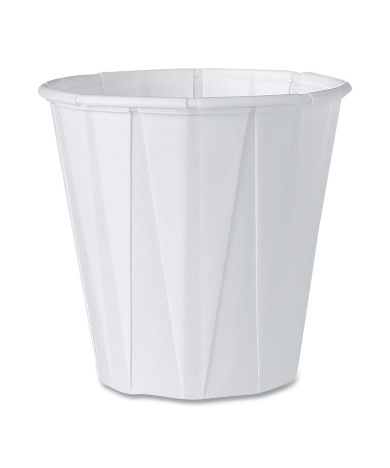 Treated, heavy-duty, multi-pleated paper cups hold up well against liquids. Rolled-wax rim maintains shape and tightness even when wet. Perfect for small servings of sauces and dressings-on premise.