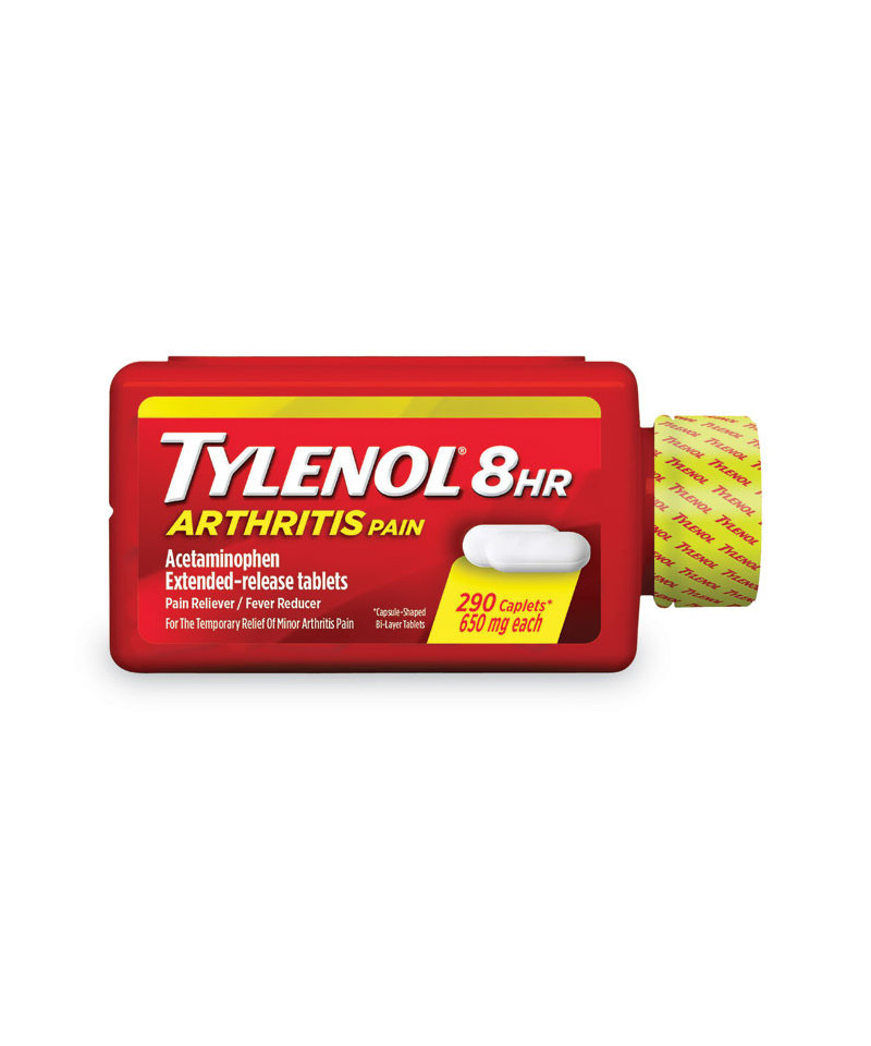 Stop the pain quickly with 8-Hour Arthritis Pain Extended Release Tablets. These 650 mg acetaminophen caplets temporarily give relief caused by minor arthritis pain. With its resealable cap, this Tylenol bottle is great for traveling, or for your desk drawer at the office, or medicine cabinet at home.