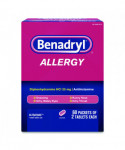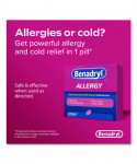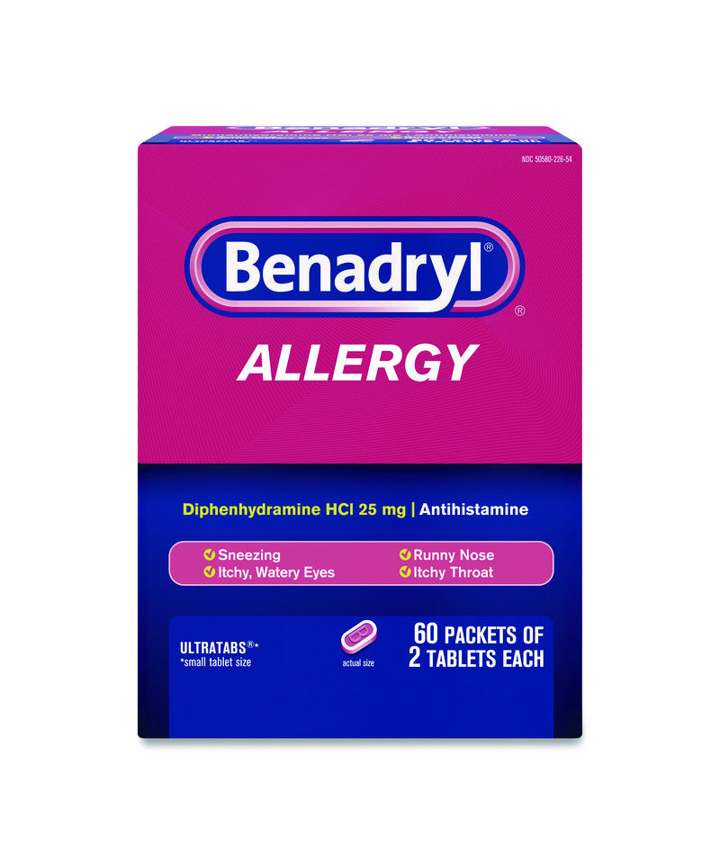 Get convenient, on-the-go cold and allergy relief in a small antihistamine tablet. Each tablet has 25 mg diphenhydramine HCl to temporarily relieve symptoms and provide powerful allergy relief from hay fever, upper respiratory allergy and common cold symptoms in one small, oval shaped coated tablet. These Go Packs come in convenient packets with two tablets per packet, making it easy to bring with you when you are on-the-go or traveling. Easy-to-swallow tablets. relieve symptoms like sneezing; runny nose; itchy throat and nose; and itchy, watery eyes and the common cold symptoms of runny nose and sneezing. A trusted allergy brand, Benadryl Ultratabs are intended for adults and children ages six and up. The allergy tablets from a doctor recommended brand provide safe and effective allergy relief when used as directed.