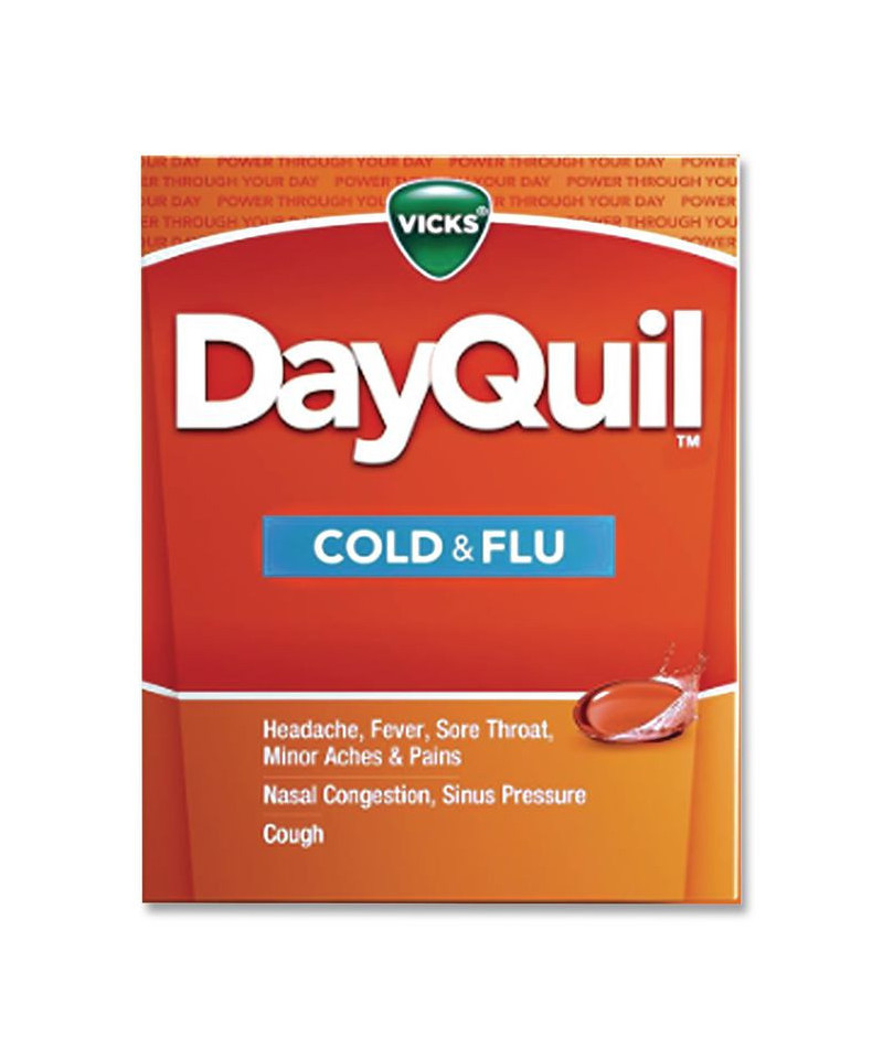 When a cold comes on strong, knock it out with DayQuil® severe cold and flu liquid medicine. Just one dose starts working fast to relieve nine of your worst cold and flu symptoms. It provides fast, powerful, maximum strength relief to treat coughing, stuffy nose, minor body pain, chest congestion, sinus congestion, sinus pressure, sore throat, headache, and fever. Use when you need fast, non-drowsy daytime relief for your roughest, toughest cold symptoms so you can get on with your day.
