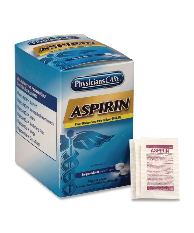 Easy-to-swallow coated tablets with extra-strength fever reducer and pain reliever. Packaged for individual use to replenish first aid stations and kits.