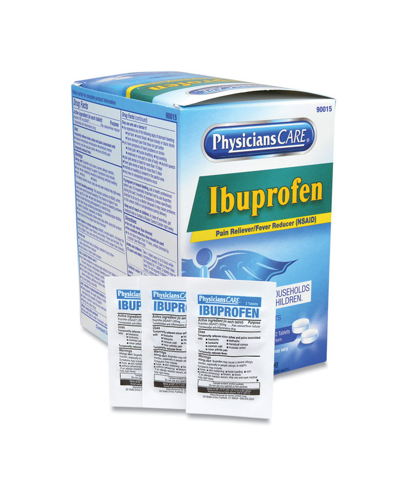 Anti-inflammatory, fever reducer and pain reliever. Temporarily relieves headache, muscular aches, toothache, minor pain of arthritis, backache and menstrual cramps. Packaged for individual use to replenish first aid stations and kits.