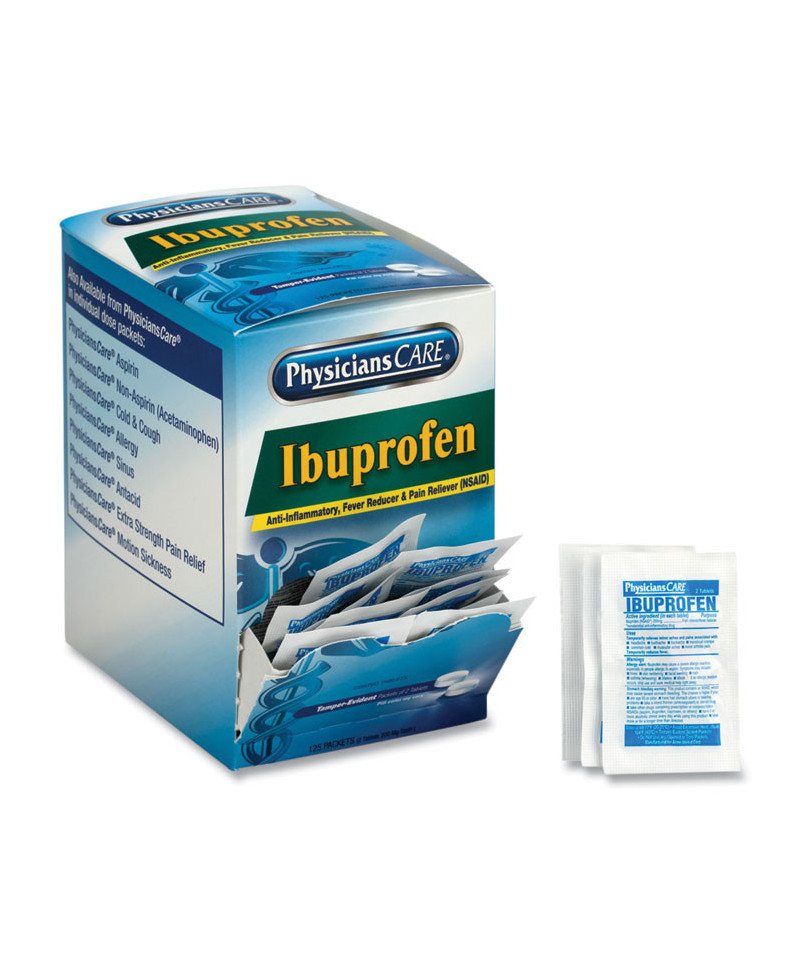Anti-inflammatory, fever reducer and pain reliever. Temporarily relieves headache, muscular aches, toothache, minor pain of arthritis, backache and menstrual cramps. Packaged for individual use to replenish first aid stations and kits.