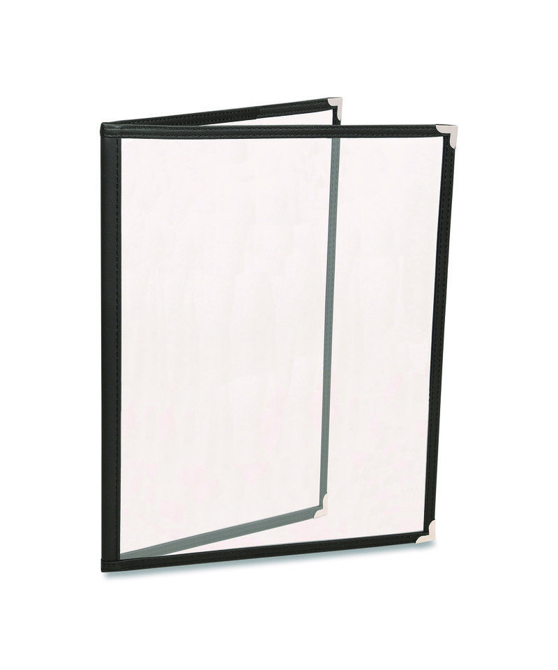 Menu Holder For 8.5 x 11 Menus, Portrait Orientation, 4-View, 9.6 x 12 Holder, Clear/Black/Silver, 10/Pack