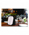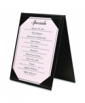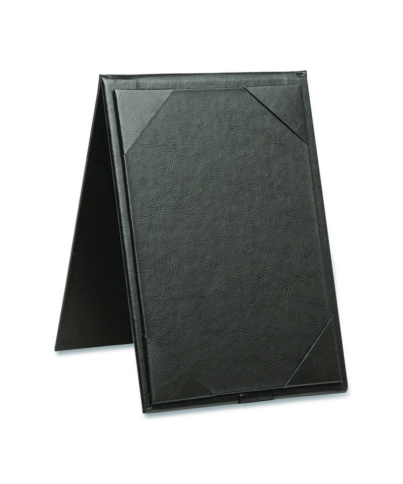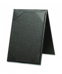 This menu holder is perfect for use in restaurants, cafes, bars and more. Freestanding A-frame design displays menus from front and back. Picture corners allow for easy menu changes. Made from durable polyurethane leather.