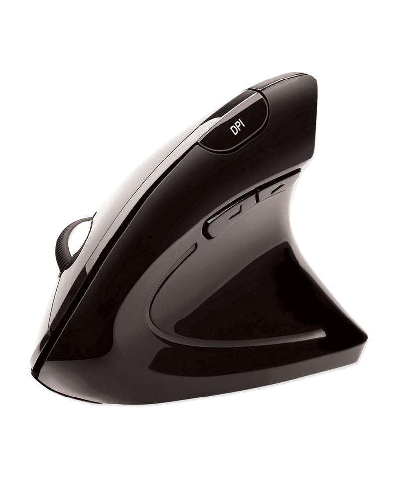 With 2.4 GHz radio frequency technology, the Adesso iMouse E10 can provide you with wireless convenience and the freedom of a smooth connection without tangled cables for up to a 33 foot range. The special ergonomic vertical design with a soft rubber grip offers a unique and comfortable user experience. With this wrist-friendly contour support, you will hold your hand in a healthy "handshake position" which is the neutral position of your forearm as opposed to the "twisted forearm" position as with a regular mouse. Three convenient buttons on the side allow intuitive control for faster back and forward browsing navigation. The 800/1200/1600 switchable DPI button on the top provides three levels of mouse cursor speed that is useful in different environments. An on/off switch helps to conserve battery power, and an indicator light lets you know when it is time to replace your batteries. iMouse E10 comes with a mini USB receiver that connects automatically without any hassle.