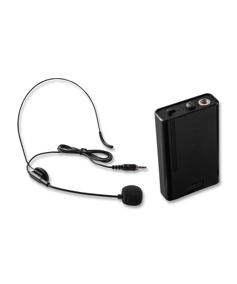 Wireless Option to use with Oklahoma Sound® PRA-8000 Pro Audio Public Address System. This headset mic pro audio system allows speakers to move about their environment freely. High quality construction creates a clear sound. The classic, black style is perfect for events at any school, hotel or conference center.