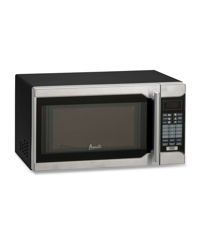 Save counter space with this compact, 0.7 cubic foot and stainless steel microwave oven from Avanti. The perfect countertop microwave for the dorm, man cave, office, studio apartment, RV, tiny home, rental room, condo, vacation home, or anywhere you need to cook food fast. This small microwave features 700 Watts of cooking power, an electronic control panel, 6 pre-set cooking settings (baked potato, popcorn, pizza, beverage, frozen dinner, reheat), and a removable glass turntable all in its compact footprint that fits perfectly on the countertop.