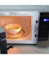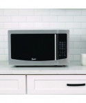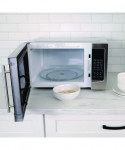 Save counter space with this compact, 1,000 watt stainless steel microwave oven. Its compact footprint allows you to fit it into tight corners and onto cramped countertops, making it ideal for dorm rooms, offices, RVs, tiny homes or anywhere you might need to cook food fast. Electronic control panel features six one-touch cook settings (Baked Potato, Beverage, Frozen Dinner, Pizza, Popcorn and Reheat) for quick and easy operation. Standard cook by power level and time as well as defrost by weight and time functionality, along with a handy "Add 30-seconds" control round out your options. Removable glass turntable simplifies cleaning tasks.