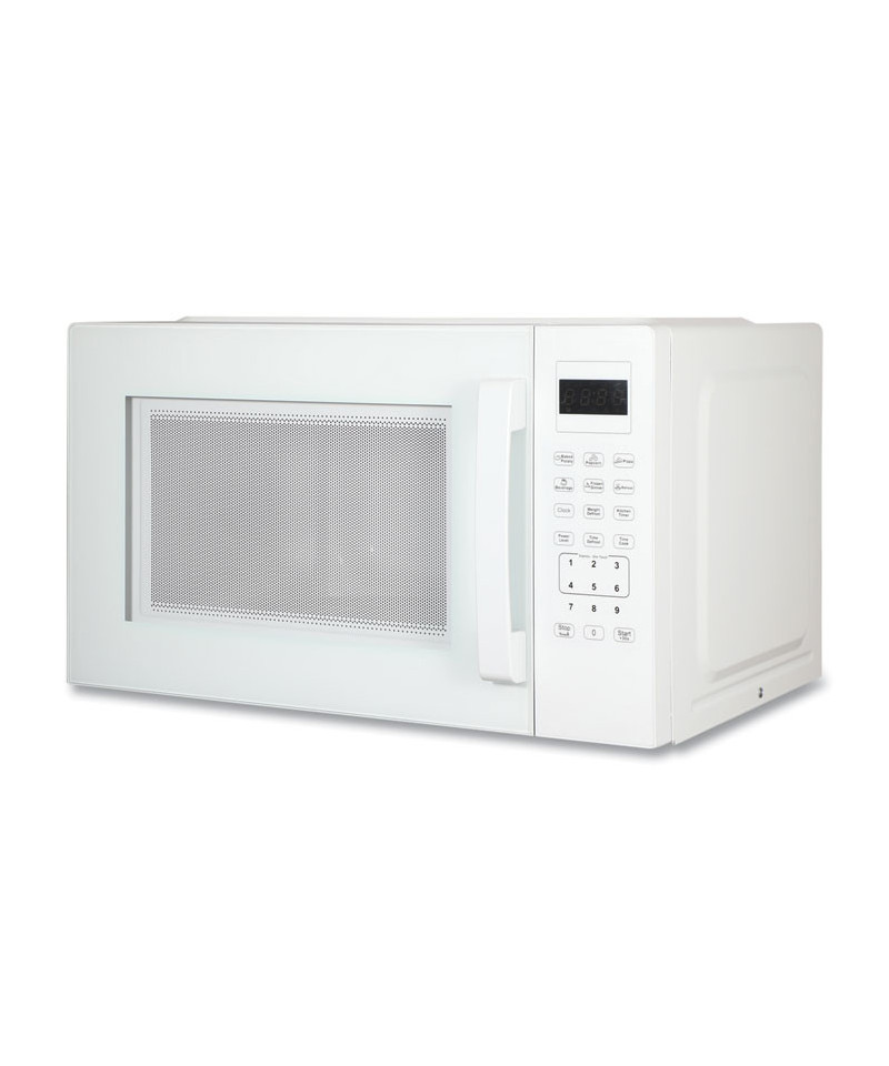 Save counter space with this compact, 1.5 cubic foot, 1,000 watt microwave oven. Its compact footprint allows you to fit it into tight corners and onto cramped countertops, making it ideal for dorm rooms, offices, RVs, tiny homes or anywhere you might need to cook food fast. Electronic control panel features six expres" one-touch cook settings: Baked Potato, Beverage, Frozen Dinner, Pizza, Popcorn and Reheat for quick and easy operation. Standard cook by power level and time as well as defrost by weight and time functionality, along with a handy "Add 30-seconds" control round out your options. Removable glass turntable simplifies cleaning tasks.
