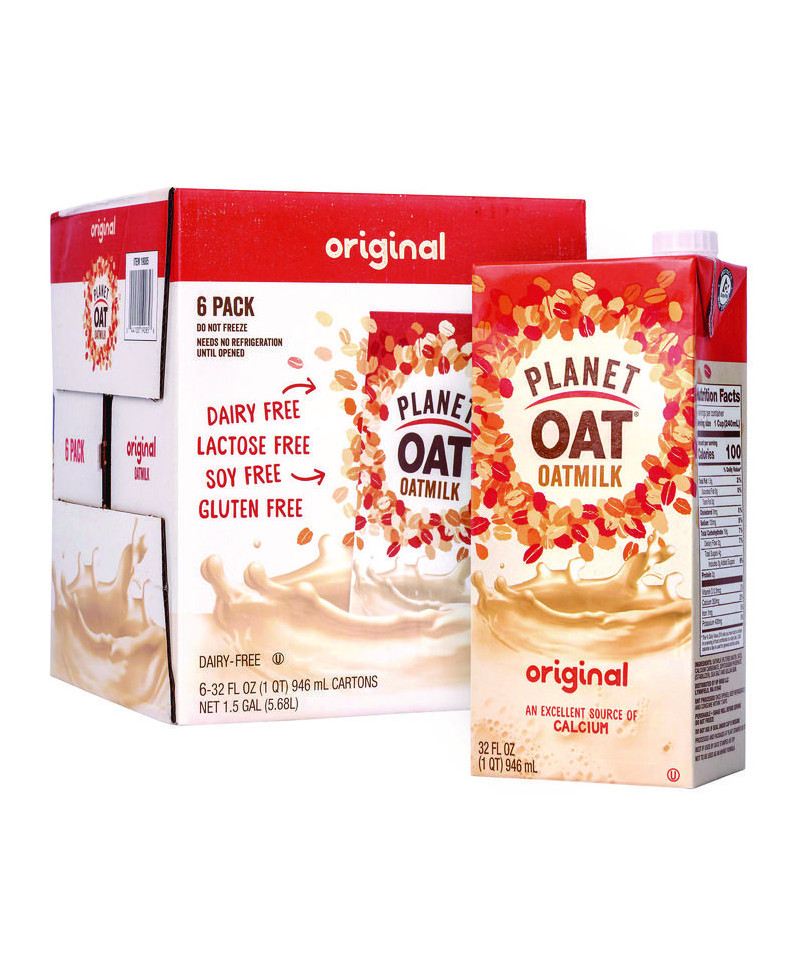 The one that started it all! Now available in a shelf stable version that can be stored in your pantry or taken on the go. Rich, creamy, and just a bit sweet, Planet Oat Original Oatmilk is a delicious choice to be enjoyed in coffee, cereal, your favorite recipes, or simply by the glass. Free from dairy, lactose, gluten, soy, peanuts, and tree nuts, this oat milk is subtly sweet and full-bodied. An excellent source of calcium, free from artificial colors, flavors, and preservatives.