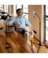 Get the best of both worlds with the Durable® TWIST COMBI Table and Floor Stand with 360° rotation for Tablets, iPads, iPhones and Androids. Featuring a convenient desk stand and a telescopic tripod, users can choose between a table or floor angle depending on their needs. Compatible with all tablets, iPads and iPhones ranging from 4.7" to 13" and weighing up to 1.8 lbs. The tripod can extend up to 5 ft 5" tall and is 27" when folded, conveniently fitting in the included storage bag for lightweight transporting. Perfect for recording your own content, Get Ready with Me, live broadcasting, watching videos, following instructions when cooking and so much more. Includes cable management slots on both the table and floor stand so you can charge your devices for total flexibility. The non-slip pads on both stands also keep your device protected and stable while in use.