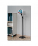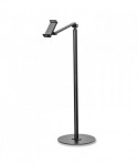 Universal tablet/phone stand. Holds screen sizes from 4.7" to 12.9". Adjustable angles and tilt features. Integrated ball joint allows for rotation, tilt and swivel in any direction. Adjustable mounting panel enables multiple size tablets or phones. Large solid weighted base for enhanced stability. Manufactured from high quality aluminum, steel and plastic.