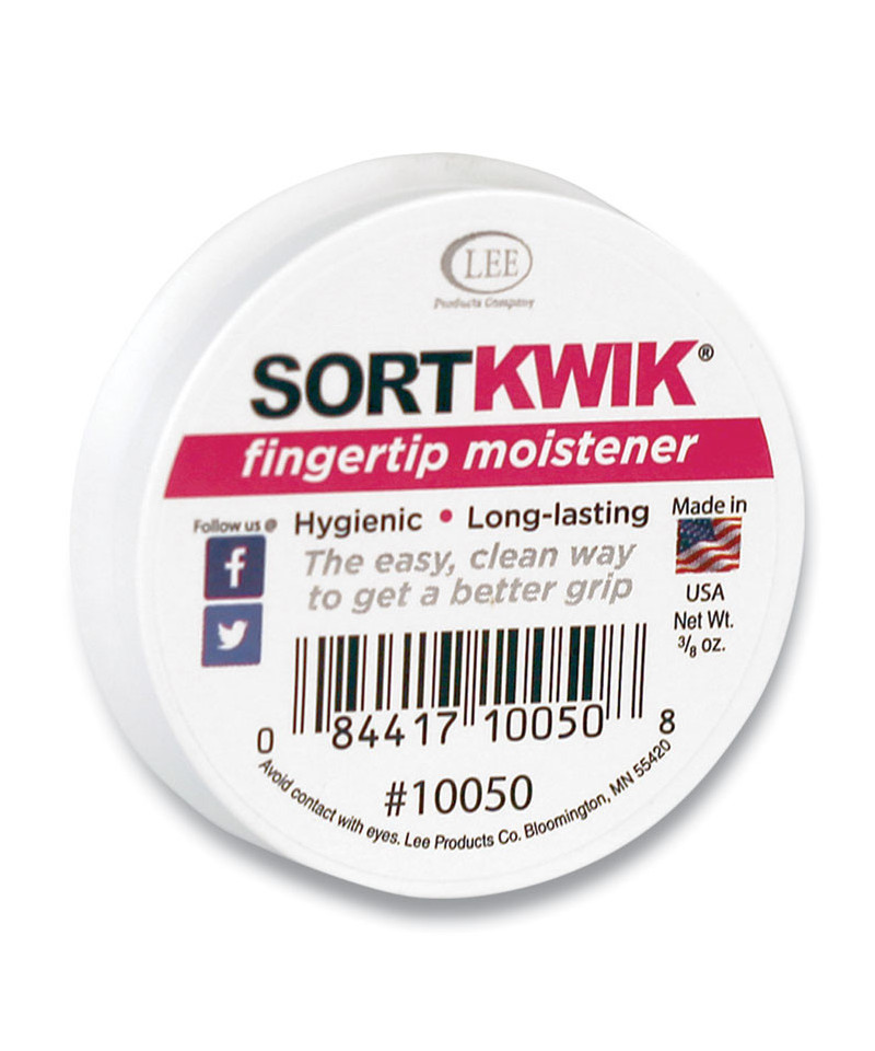 Sorting is more efficient with Sortkwik to make your workday easier. Our patented formula improves speed and accuracy when handling paper, currency, and fabric. It facilitates a better grip for more accurate counting, faster filing, quicker collating, and easier sorting. Paperwork dries out your skin, but Sortkwik's specially formulated ingredients replenishes the natural moisture to your fingertips. It is conveniently packaged in an easy to open, recycled, plastic container with blotter to absorb excess moisture beads. Fingertip moisteners are used worldwide by bank tellers, cashiers, mailroom clerks, teachers and more. Sortkwik is the original preferred brand since 1953.