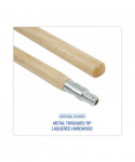 Long-lasting, die-cast aluminum threaded tip is secured to a natural lacquered hardwood broom handle. Composed of a durable handle and metal thread, this handle is strong and reliable. The handle's smooth grip is ideal for regular use with or without gloves in any environment. The clear-coated finish is easily wiped clean and repels dust. The metal threaded tip is compatible with brooms using the same threading and assembles without tools.