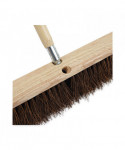 Long-lasting, die-cast aluminum threaded tip is secured to a natural lacquered hardwood broom handle. Composed of a durable handle and metal thread, this handle is strong and reliable.