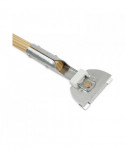 Clip-on Dust Mop Handle quickly and easily snaps onto Boardwalk® Clip-On Dust Mop Frame from standing position. Built from 12-gauge zinc-plated steel hardware for the ultimate in strength and durability. Includes a 180° swivel head with sliding nylon lock that clamps the mop firmly into place. Double-lacquered wood handle is sturdy and long-lasting. Dust mop head and frame are sold separately.