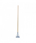 Mop handle offers the flexibility of changing a mop head, but without the hassle. To switch heads, simply slide the side gate open and the handle's thumb wheel clamps the mop firmly in place. Solid wood, slightly lacquered handle with rounded tip for a comfortable grip. Ideal for use with 1-inch headband mops, which are sold separately.