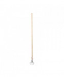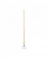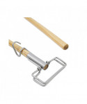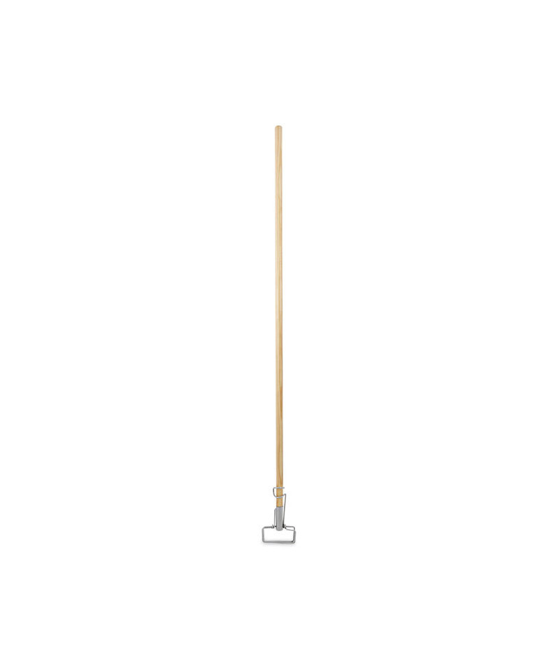 Precision-cut, spring grip, rust-resistant, metal clamp broom handle with 0.25" wire and wing nut. Natural colored, lacquered hardwood handle with smooth finish that resists splintering and is comfortable for extended use. Composed of solid hardwood for maximum durability and dependability for heavy-duty use applications. The rounded tip makes maneuvering and transport easy. Compatible with wet mops, which are sold separately. 1.13" in diameter, 60" long.