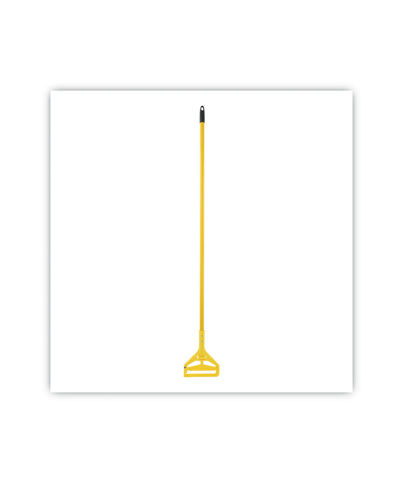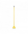 Boardwalk® Plastic Head Quick Change Mop Handle is equipped with a hinged side latch with an adjustable roller knob. Quickly and easily loads most mop heads for convenient replacing. The vinyl-covered aluminum handle with smooth grip is ideal for regular use with or without gloves in any environment. Strong and reliable, the coated finish is easily wiped clean and repels dust and water. Loophole is the top can be used for hanging.