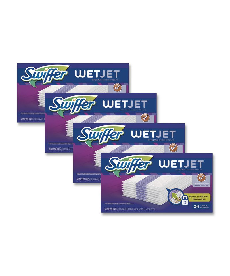 Super-absorbent pad traps and locks away dirt in its core, cleaning and absorbing messes. When you're done, just remove the pad and throw it, and all that dirt, away forever. For use with WetJet® mops and cleaning solution.