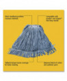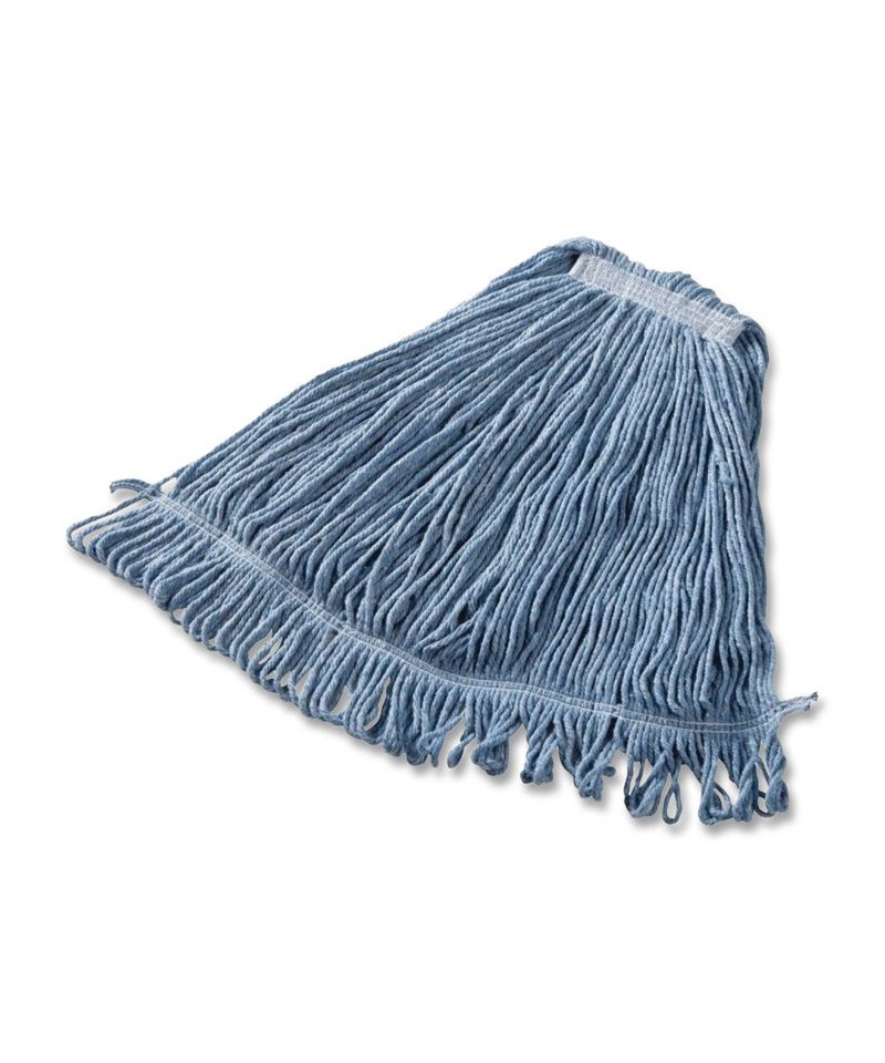 Blend of 4-ply cotton and synthetic fibers for higher absorbency and more launderings than cotton mops, and has looped ends and a yarn tailband to reduce tangling and fraying for improved performance. The synthetic mesh headband resists moisture retention so the mop head can dry between uses. Color-coded to help minimize cross-contamination. These mop heads are suitable for use in commercial and industrial applications.
