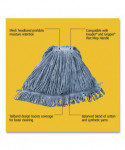 Super Stitch Blend Mop Head, Cotton/Synthetic, Large, 1" Red Headband, Blue, 6/Carton
