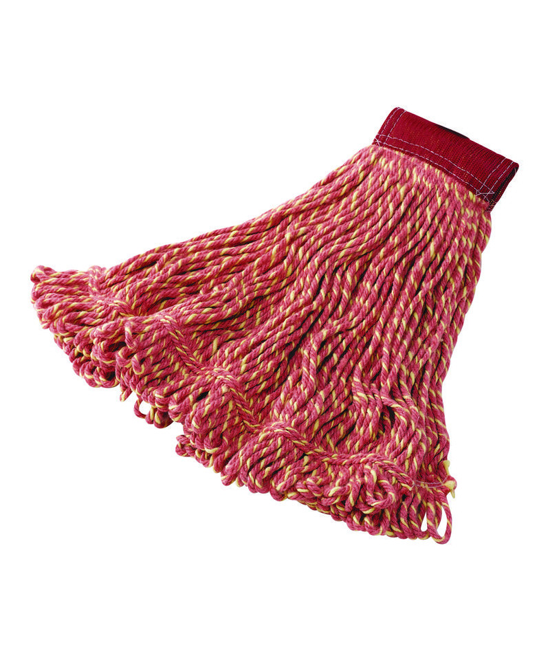 The Rubbermaid® Commercial Super Stitch Blend Mop has a blend of 4-ply cotton and synthetic fibers for higher absorbency and more launderings than cotton mops, and has looped ends and a yarn tailband to reduce tangling and fraying for improved performance. The synthetic mesh headband resists moisture retention so the mop head can dry between uses. Color-coded to help minimize cross-contamination. These mop heads are suitable for use in commercial and industrial applications.