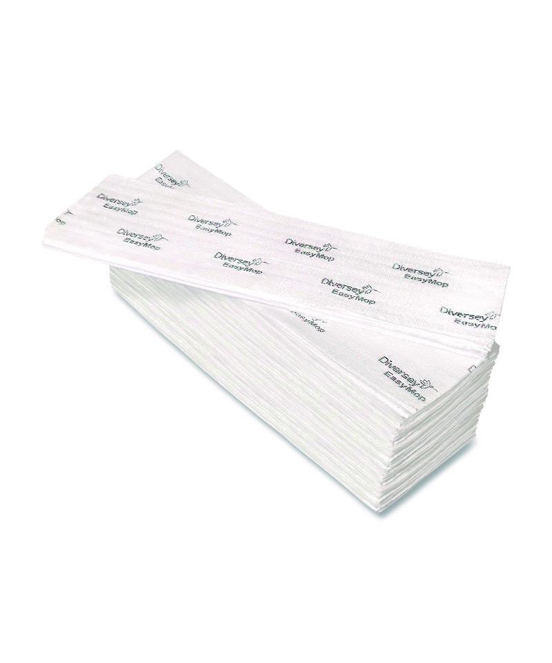 Single-use microfiber mop pad for customers that demand hygienic cleaning that only microfiber can offer but find it hard to organize the necessary laundry logistics. This single-use blended microfiber mop pad delivers on-demand high-efficiency cleaning on all types of surfaces, significantly reducing overall operating costs, especially in facilities where laundering is not available or desirable.