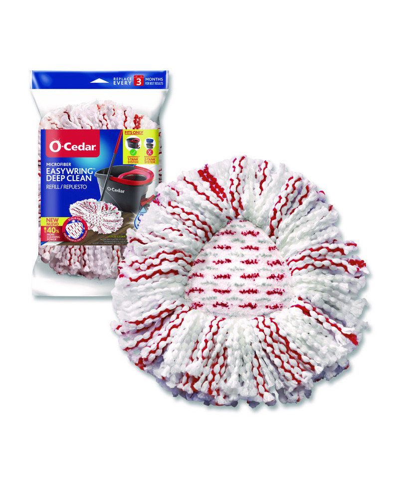 Keep your floors pristine and stain-free with the O-Cedar® Deep Clean Refill, specially designed for the EasyWring Spin Mop System. Featuring a unique scrub pad that provides 40% more cleaning power on stubborn dirt and grime with less effort, you'll enjoy clean floors in no time. The deep cleaning microfiber strands trap dirt, dust, hair and remove over 99% of bacteria with just water. Plus it is reusable and machine washable.