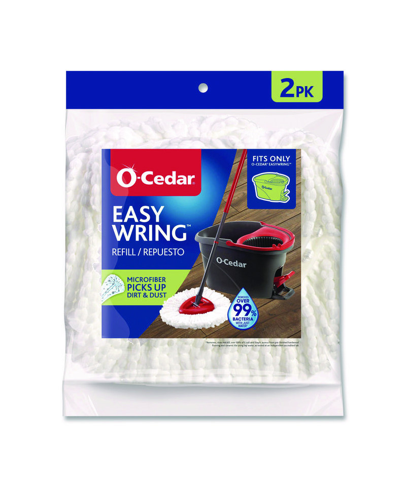 A truly deep clean has never been easier. Specifically designed for use with the O-Cedar® EasyWring Spin Mop & Bucket System, this multi-purpose refill is made from hardworking microfiber that removes over 99% of bacteria with water to remove stubborn dirt and grime. Plus, it's reusable and machine washable for sustainable cleaning. Consider adding a powerful cleaner and scented cleaning PAC to your cleaning water, designed for the O-Cedar EasyWring system,