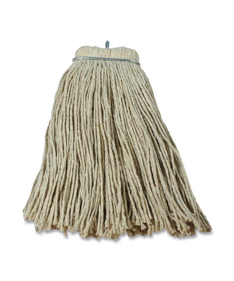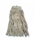 Reusable cotton mop head is suitable for commercial or residential general floor cleaning. Works well on smooth and rough surfaces. Made from grade 1 yarn with high tensile strength for long-lasting use.