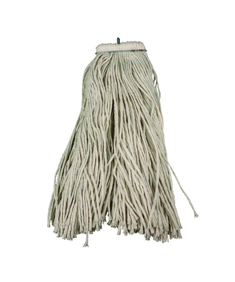 Reusable cotton mop head is suitable for commercial or residential general floor cleaning. Works well on smooth and rough surfaces. Made from grade 1 yarn with high tensile strength for long-lasting use.