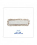 Ten-ply, Hygrade white cotton, cut-end design enhances durability while minimizing snags. Quick-drying, absorbent, slot pocket style with synthetic backing. Used for attaching a mop handle and dusting floors. Works with spray or liquid dust mop treatment and other solutions used to dust floors and add shine. Great for general purpose cleaning and wiping floor surfaces of various materials. Mop handle and dust mop frame are sold separately.