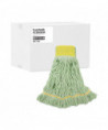 First mop head made from recycled PET plastic bottles, contributing to reduced landfill waste. EarthSpun® fibers are manufactured from 30% post consumer P.E.T. plastic bottles.